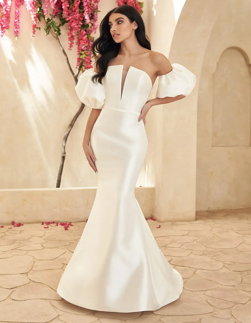 For those of you who are quite happy to flaunt your bottom assets, choose a gown that is more fitted around your hips. Just keep in mind that because you may be a different size at your hips then your bust you may need some alterations to be done. Ask your retailer about split sizing.