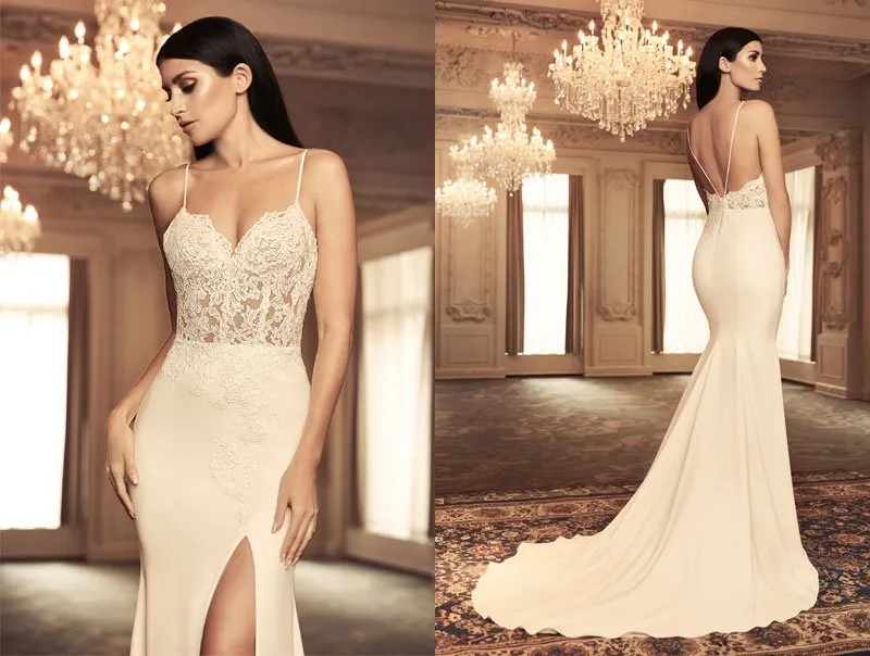 Contemporary details like the sheer bodice and skirt slit enhance the traditional neckline and silhouette of this gown. But we are always happy to make adjustments in order to create your dream dress! Never pictured yourself walking down the aisle in sheer lace? Or need the back raised a bit? Speak to your nearest Authorized Retailer about how we can accommodate you!