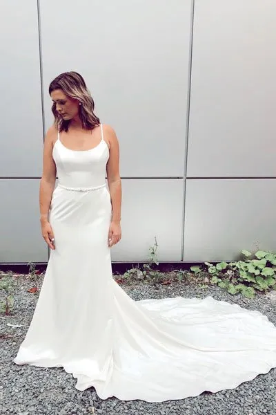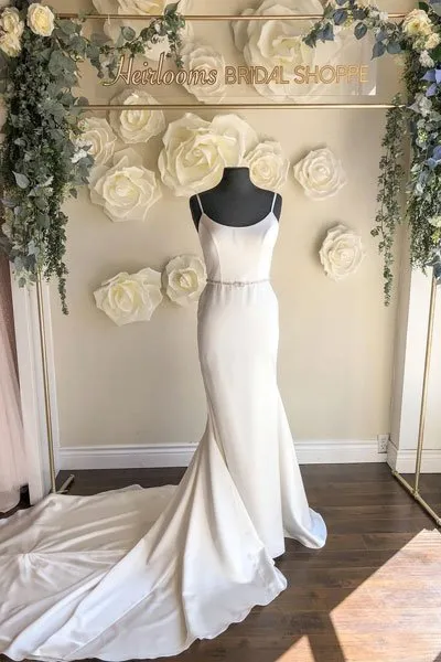 Sleek and glamorous, Paloma Blanca Style 4914 is an absolute showstopper. This polished satin gown has a scooped neckline that perfectly compliments the open low back. A dazzling beaded belt and an elegant long train adds to the allure of this wedding dress.