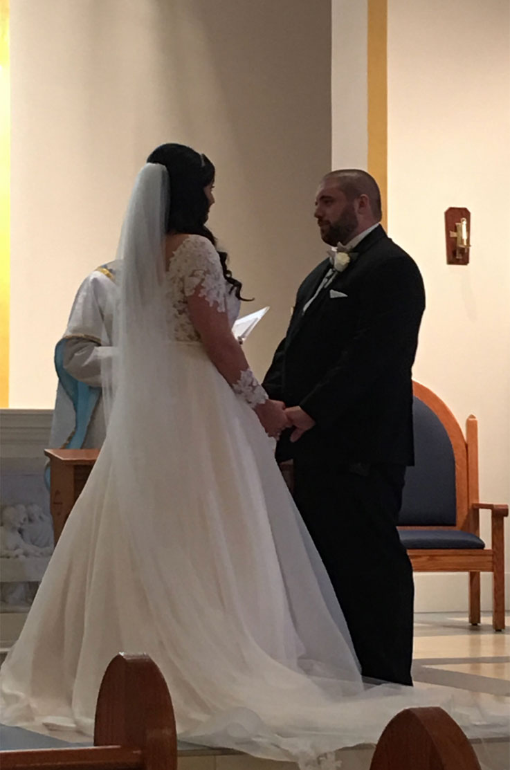 Steve and I met at a friends Fourth of July party in 2014. One of my friends was dating one of his friends (they’re now married) and they hosted the party in the Hamptons. Nothing happened that first year between us but the following year in 2015 we were both at the same party again and that’s where our relationship began. Fast forward to one Friday night in November 2017, I came home to our apartment after a day of working and there were notes all over from Steve recapping our relationship. The final note told me to turn around and he was on his knee, ring in hand. We just got married Nov 3, 2018 and can’t wait to see what the future holds for us. Both of the friends who’s parties we attended that began our relationship, were in our bridal party.