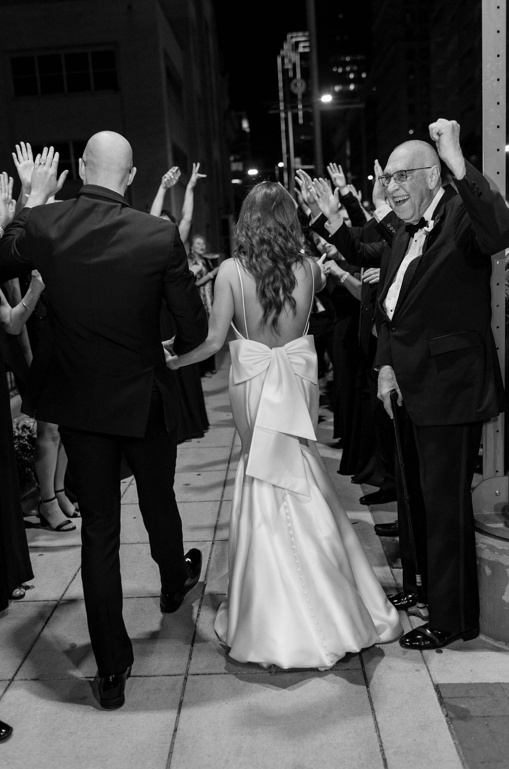 We married on April 8 in the heart of Downtown Dallas – the place that brought us together in love after nearly a decade of friendship. We celebrated our love among our friends and family in the city we love so dearly, with the skyline as our backdrop. My Paloma Blanca gown was the perfect fit for our classic, city-sleek wedding, and the bow was the just the right pop of fun I was looking for.