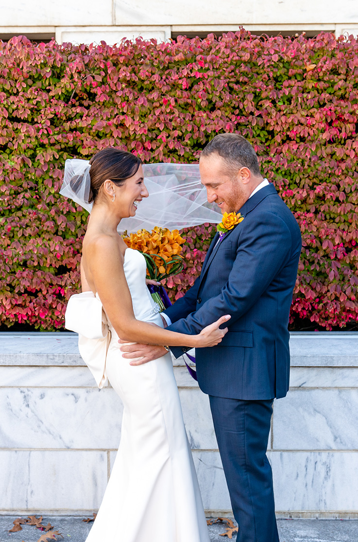 Because of Covid, our guest list would small but mighty (9 of us total!) and on October 17, 2020 we tied the knot in our living room. The exact place we got engaged 5 months prior. Our brothers were our best man and man of honor. I got ready with my mom and mother in law at our house and we met the rest of the family at the Cleveland Museum of Art for first look and family portraits. We lucked out with the most beautiful fall day! We had a traditional Jewish wedding officiated by the Rabbi who Sarah was Bat Mitzvah’d by. Following the wedding we toasted champagne and had a few nibbles before going to our favorite restaurant Giovanni’s for an Italian feast! Even though Covid kept our wedding small, the love was boundless and the laughs over flowing. Our day turned out absolutely perfect and I felt like an absolute princess in my Mikaella gown